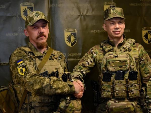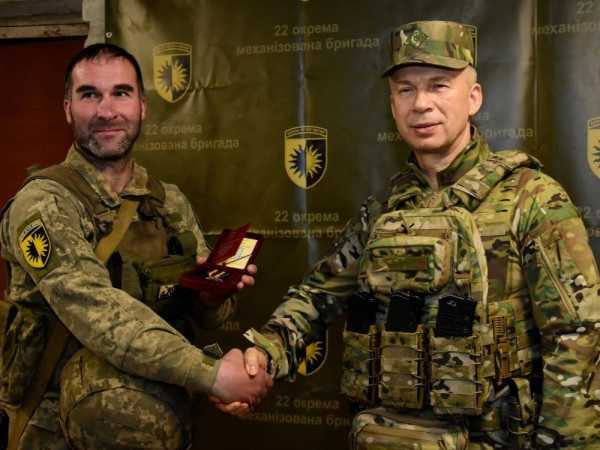 Головнокомандувач ЗСУ Олександр Сирський нагородив почесними відзнаками військових 22-ї окремої механізованої бригади Сергія Бегму та Вадима Басистого із Кіровоградщини.
