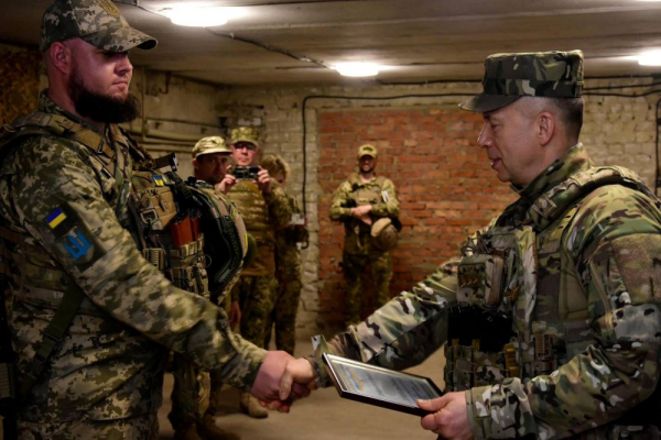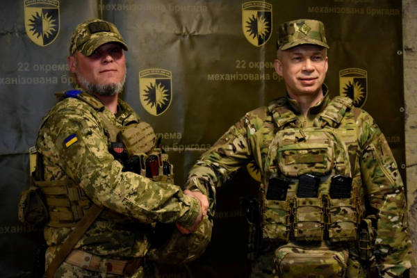 Головнокомандувач ЗСУ Олександр Сирський відзначив військових 22-ї окремої механізованої бригади із Кіровоградщини Руслана Дяденка та Андрія Терещенка.
