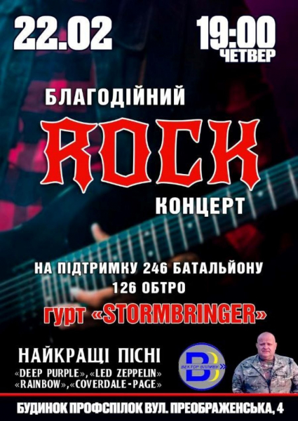 Кропивничан запрошують на довгоочікуваний благодійний рок-концерт гурту “Stormbringen”, який відбудеться в Будинку профспілок 22 лютого в Кропивницькому.