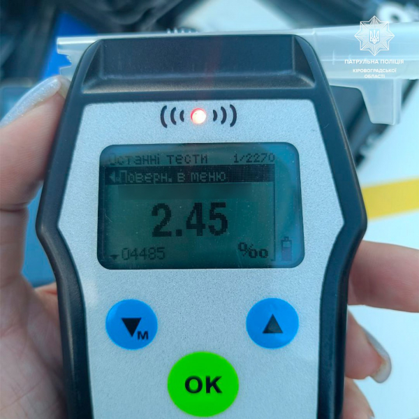 Як повідомили в патрульній поліції області, на місце події одразу прибули патрульні. Під час спілкування інспектори одразу помітили у керманича ознаки алкогольного сп’яніння та запропонували пройти огляд за допомогою алкотестера Драгер. Прилад показав 2,45 проміле, що у понад 12 разів перевищило допустиму норму.