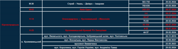 - Н-23 Кропивницький — Кривий Ріг — Запоріжжя: 4-22 км.