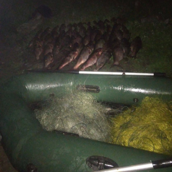 Браконьєра затримали під час рибоохоронного рейду. Порушник виловити 63 товстолоби забороненим знаряддям лову – двома сітками з ліски довжиною 200 метрів. Браконьєр завдав збитків рибному господарству на 229 194 гривень.
