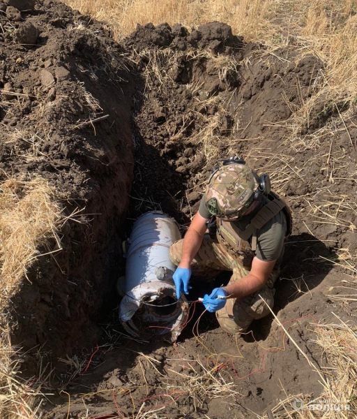 Тож після того, як її виявили на території області, на місце прибули фахівці відділу вибухотехнічної служби поліції та знешкодили бойову частину ракети шляхом контрольованого підриву.