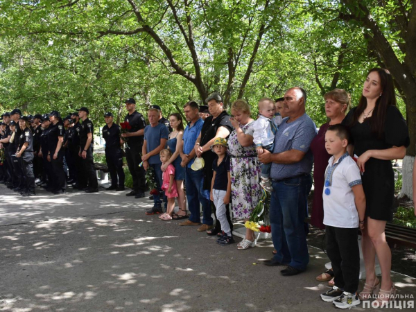 Меморіальну дошку встановили на фасаді будівлі Долинського відділу поліції. Пам’ятний знак відкрили мама та дружина загиблого.