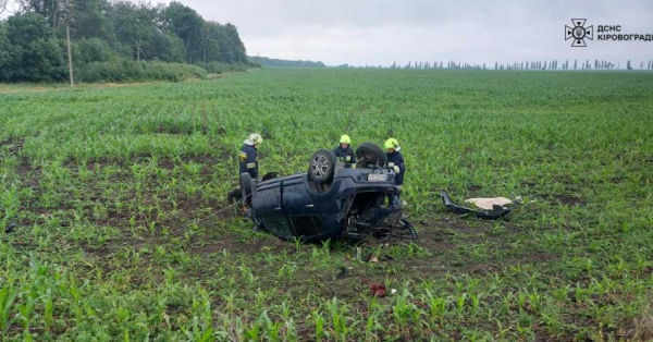 Як інформує ГУ ДСНС в Кіровоградській області, водій легковика «Dacia Sandero» не впорався з керуванням, з’їхав з проїжджої та перекинувся.