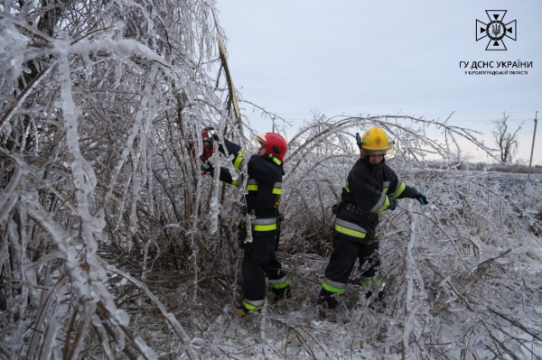 Як повідомили в ГУ ДСНС області, наразі аварійні бригади енергетиків у тісній співпраці з підрозділами ДСНС ліквідовують наслідки намерзання дерев, споруд і ліній електропередач.