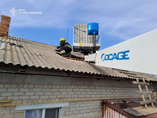 Протягом 15-16 квітня підрозділи ГУ ДСНС в області виїжджали 59 разів для ліквідації наслідків негоди на території Кіровоградщини. Зокрема, рятувальники відновлювали покрівлю медичного закладу.