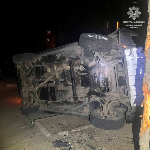 Водій автомобіля Porsche Cayenne не вибрав безпечної швидкості руху і наїхав на бордюр та дерево, після чого перекинувся. Патрульні виявили у водія ознаки сп’яніння, проте чоловік відмовився проходити огляд.