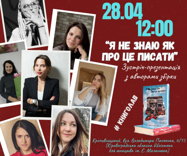 Презентація книги відбудеться в Кіровоградській обласній бібліотеці для юнацтва ім. Є. Маланюка о 12:00.