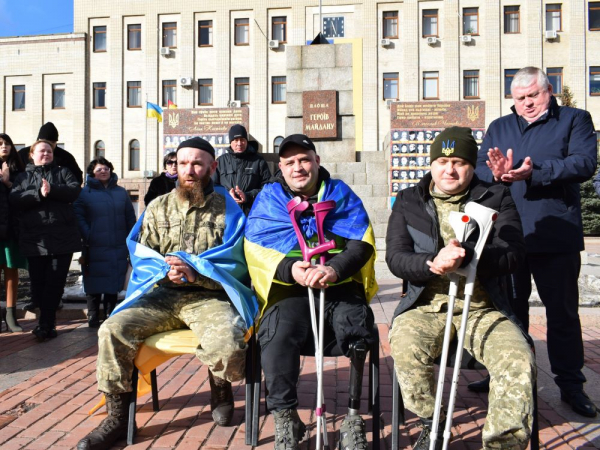 Свою волонтерську ходу Володимир почав зі 101-го мікрорайону, повз вулиці Євгена Тельнова, Соборну і Велику Перспективну до площі Героїв Майдану. Дорогою кропивничани ставали в живі коридори, спинялися випадкові перехожі, сигналили автівки. Люди кидали донати до рюкзака, який несла наталя. На площі воїна зустрів велелюдний натовп, зокрема і представники міської та обласної влади, волонтери й інші ветерани.