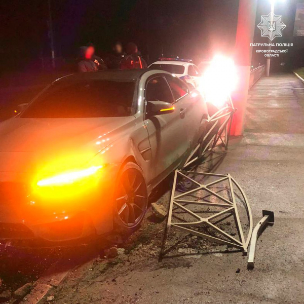 Як повідомили в патрульній поліції області, водій BMW M4 не врахував дорожньої обстановки, не вибрав безпечної швидкості руху та скоїв наїзд на металевий паркан.
