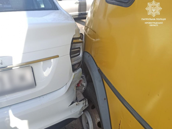 Як повідомляє патрульна поліція області, водій маршрутки не був уважний, не вибрав безпечної швидкості руху, не дотримався безпечної дистанції та зіткнувся з автомобілем Renault Logan.