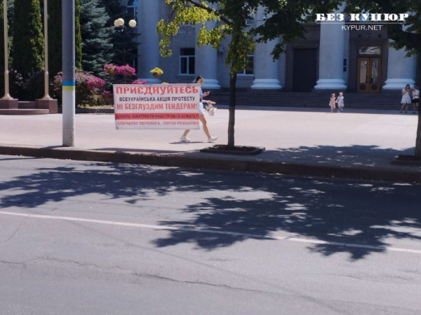 Ця акція протесту – всеукраїнська. Проходить під гаслом – “Ні безглуздим тендерам. Досить закатувати наші гроші в асфальт. Спочатку перемога – потім ремонти”.