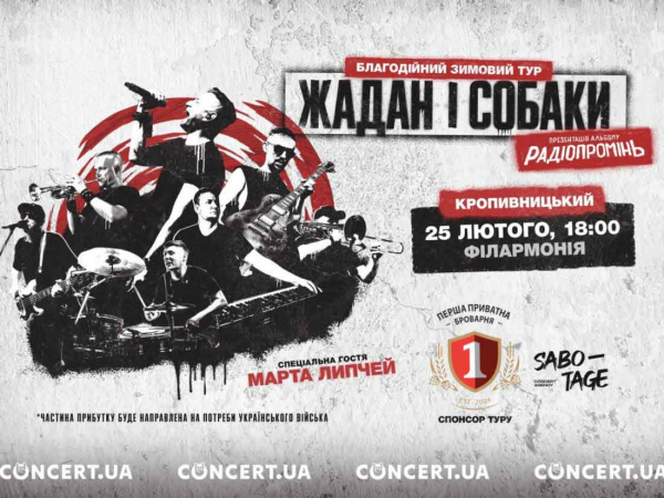 Квитки – https://concert.ua/uk/booking/zhadan-i-sobaki-kropyvnytskyi/