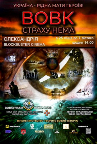 Сьогодні, 25 січня, о 14:00 в кінотеатрі “Blockbuster cinema” презентують кінооповідь про спецпризначенців “Вовк. Страху немає”, яку показуватимуть щодня до 7 лютого.