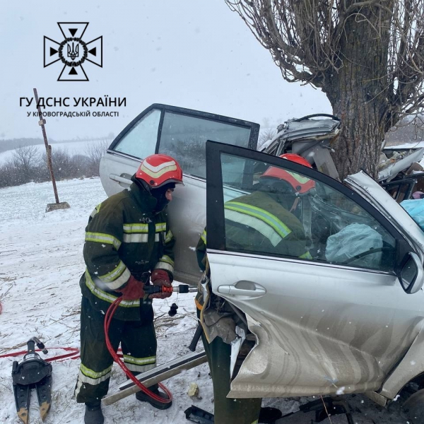 Надзвичайники новоукраїнського підрозділу ДСНС за допомогою гідравлічного інструменту деблокували тіло загиблого чоловіка 1973 р.н. з понівеченого авто.