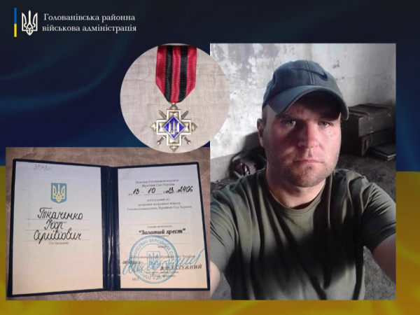 Захисник Ігор Ткаченко, житель міста Благовіщенське Голованівського району, за проявлену мужність й успішне виконання завдань під час бою, отримав почесний нагрудний знак “Золотий Хрест”.