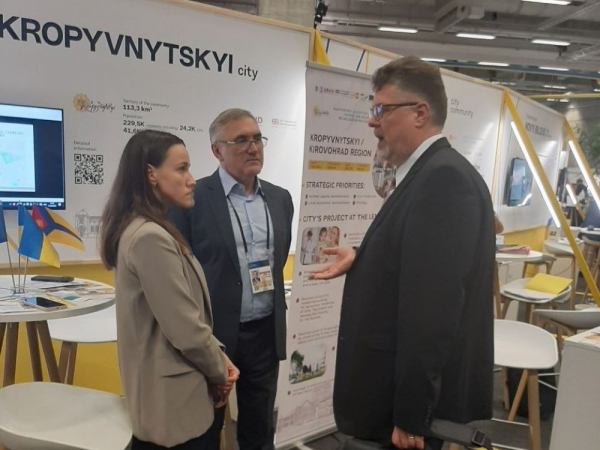 У роботі конференції взяла участь і делегація з Кропивницького на чолі із заступником міського голови Олександром Мосіним. На стенді обласного центру представили три проєкти розвитку громад: