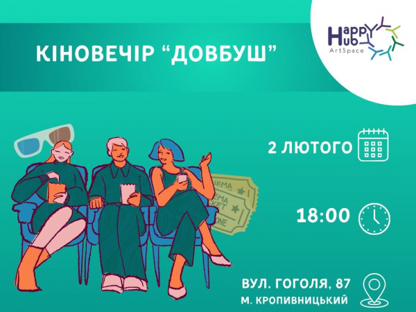 2 лютого о 18:00 арт-простір “HappyHub” запрошує кропивничан поринути у світ українського кіно та історії Карпат разом з фільмом “Довбуш”.